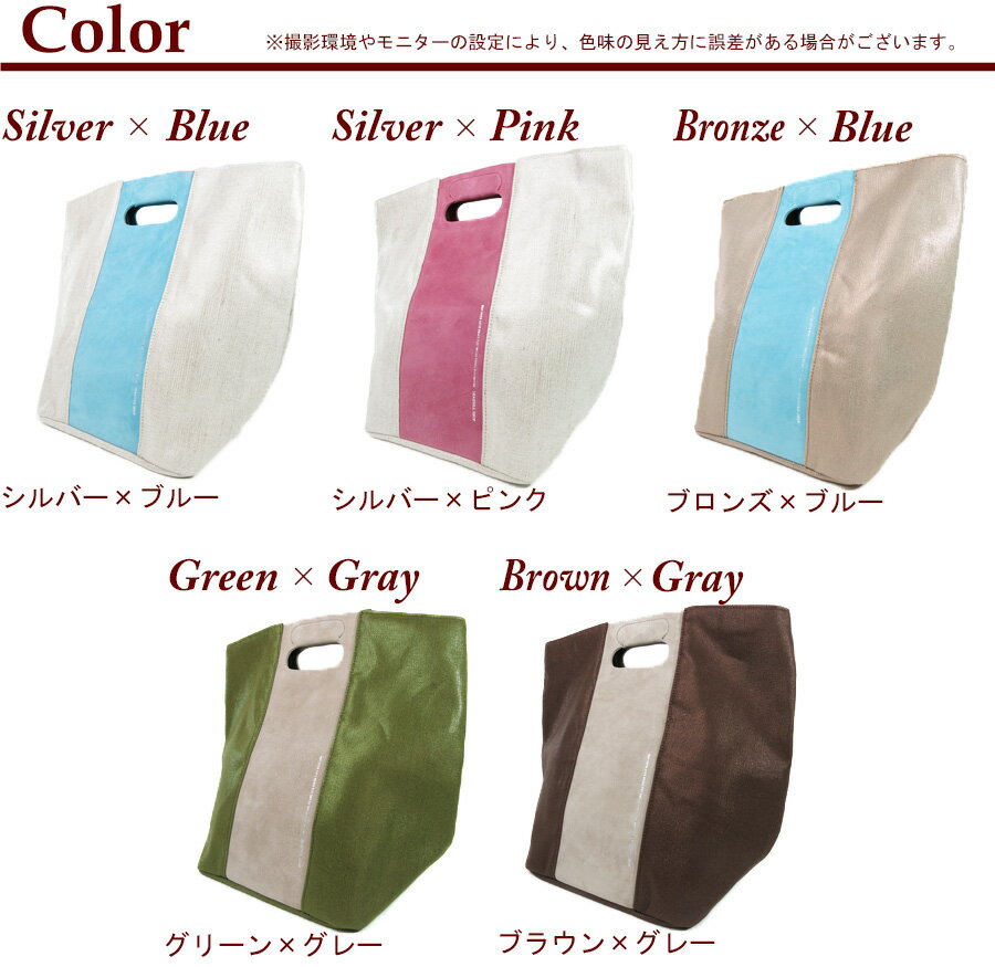 ギフト対応 商品詳細 商品番号 SMAK-1805 仕様 ■サイズ(概寸表記) タテ36cm×ヨコ24cm×幅20cm ■重さ 438g ■本体開口部 37cm ■ポケット ○内ポケット オープンポケット:2つ ■ハンドル 幅:3.8cm 周径:9cm 高さ:3.3cm カラー 〇シルバー×ブルー 〇シルバー×ピンク 〇ブロンズ×ブルー 〇グリーン×グレー 〇ブラウン×グレー 素材 麻リネン×綿コットン(箔押し加工) 原産国 日本製(made in JAPAN) 特徴 綿と麻の混毛素材に箔押し加工を施し、さらに洗い加工で、光沢感を抑えた大人のキラキラトートです。